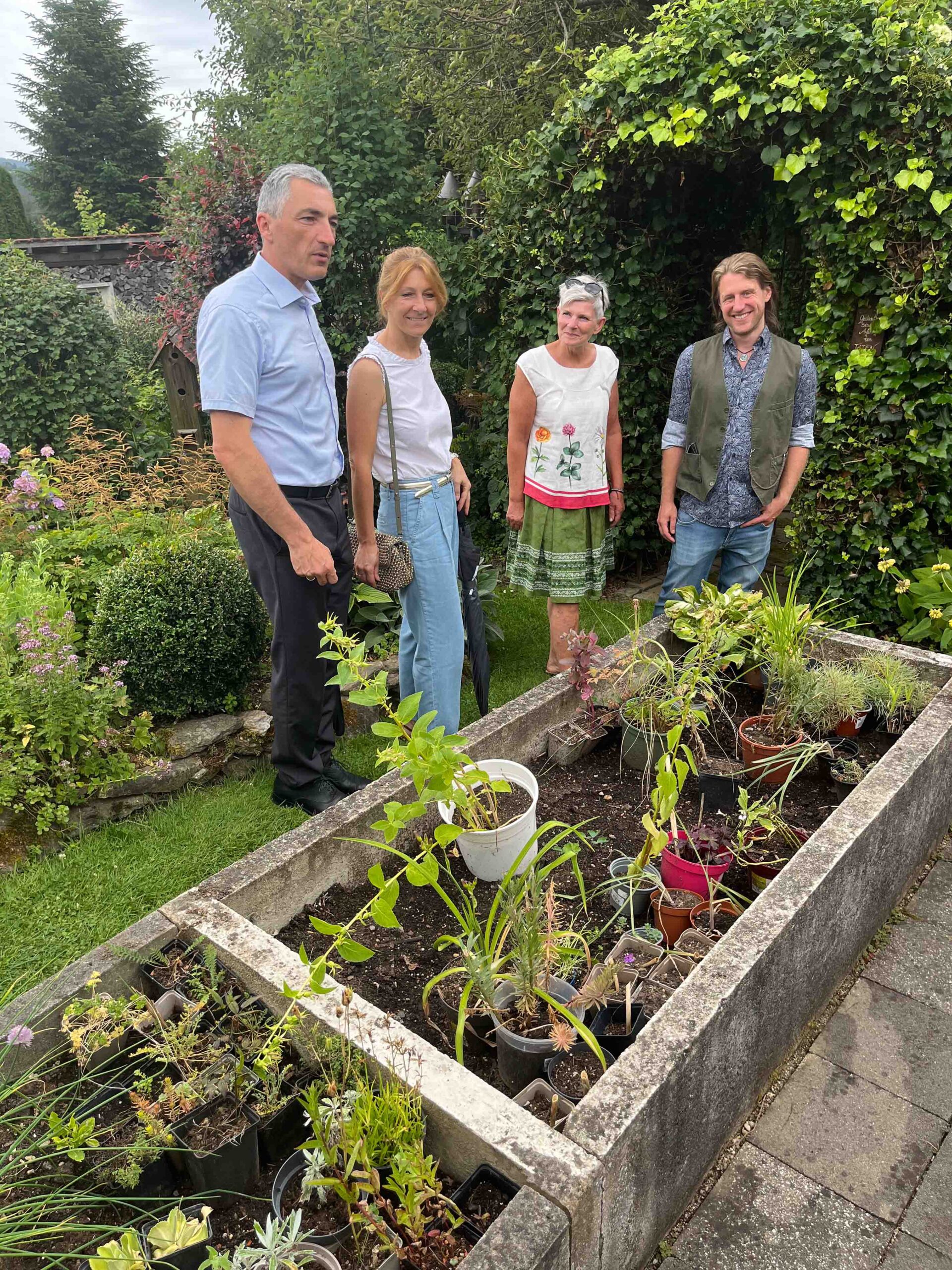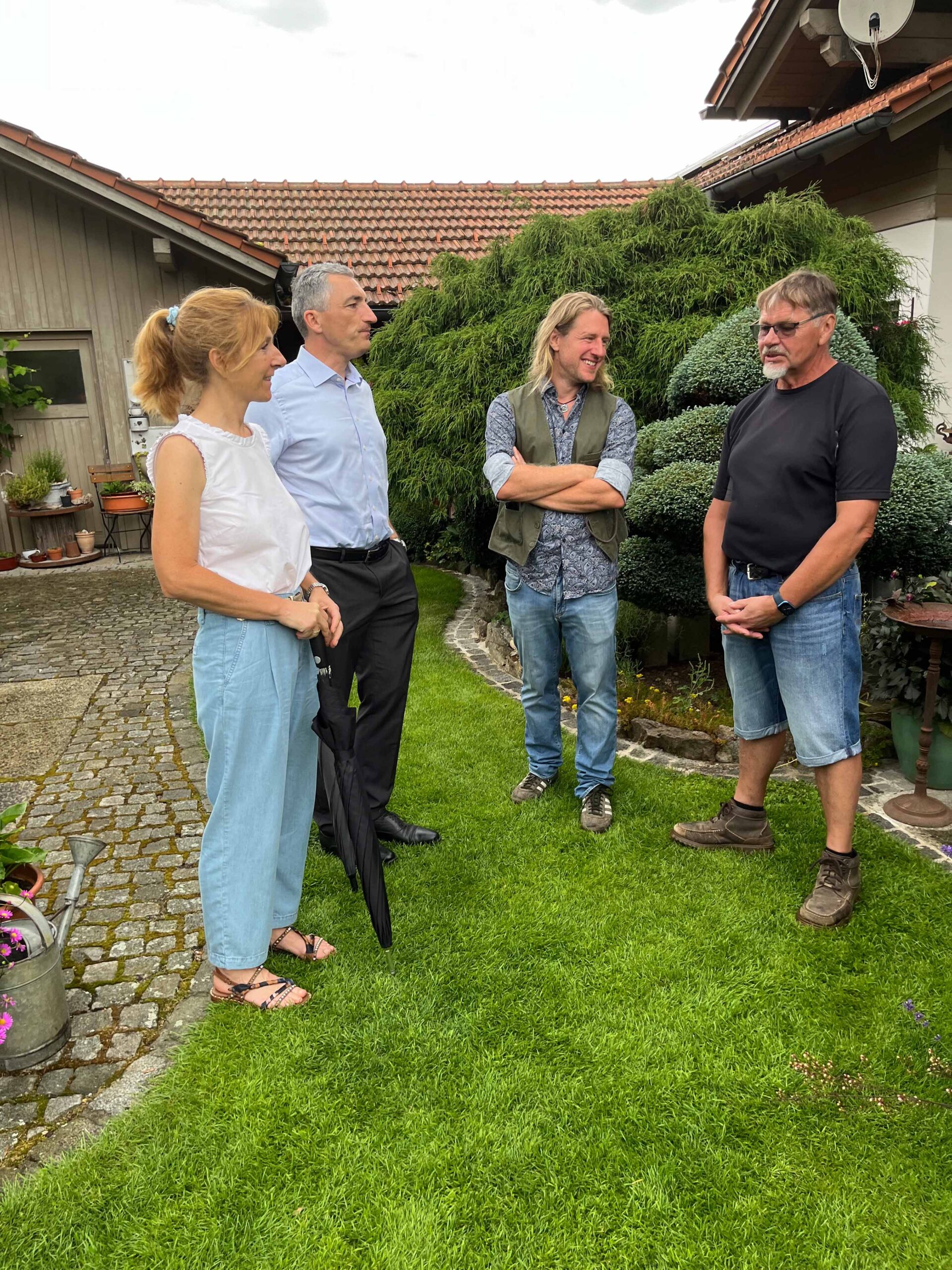 - Im Gespräch über die Entstehung des Gartens der Familie Baier (v.li.): Sonja Raith, Landrat Dr. Ronny Raith, Kreisfachberater Martin Straub und Karl Baier. Foto: Iris Gehard / Landratsamt Regen