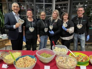 Im Anschluss durften die frisch gekürten Ehrenamtskarteninhaber das Buffet des Elternbeirats stürmen. Der hielt eine große Auswahl hausgemachter Salate und Schnitzel bereit. Musikalisch umrahmt wurde der Festakt von Stefanie Süß, die „unplugged“ ein paar Stücke auf ihrer Ziehharmonika zum Besten gab.