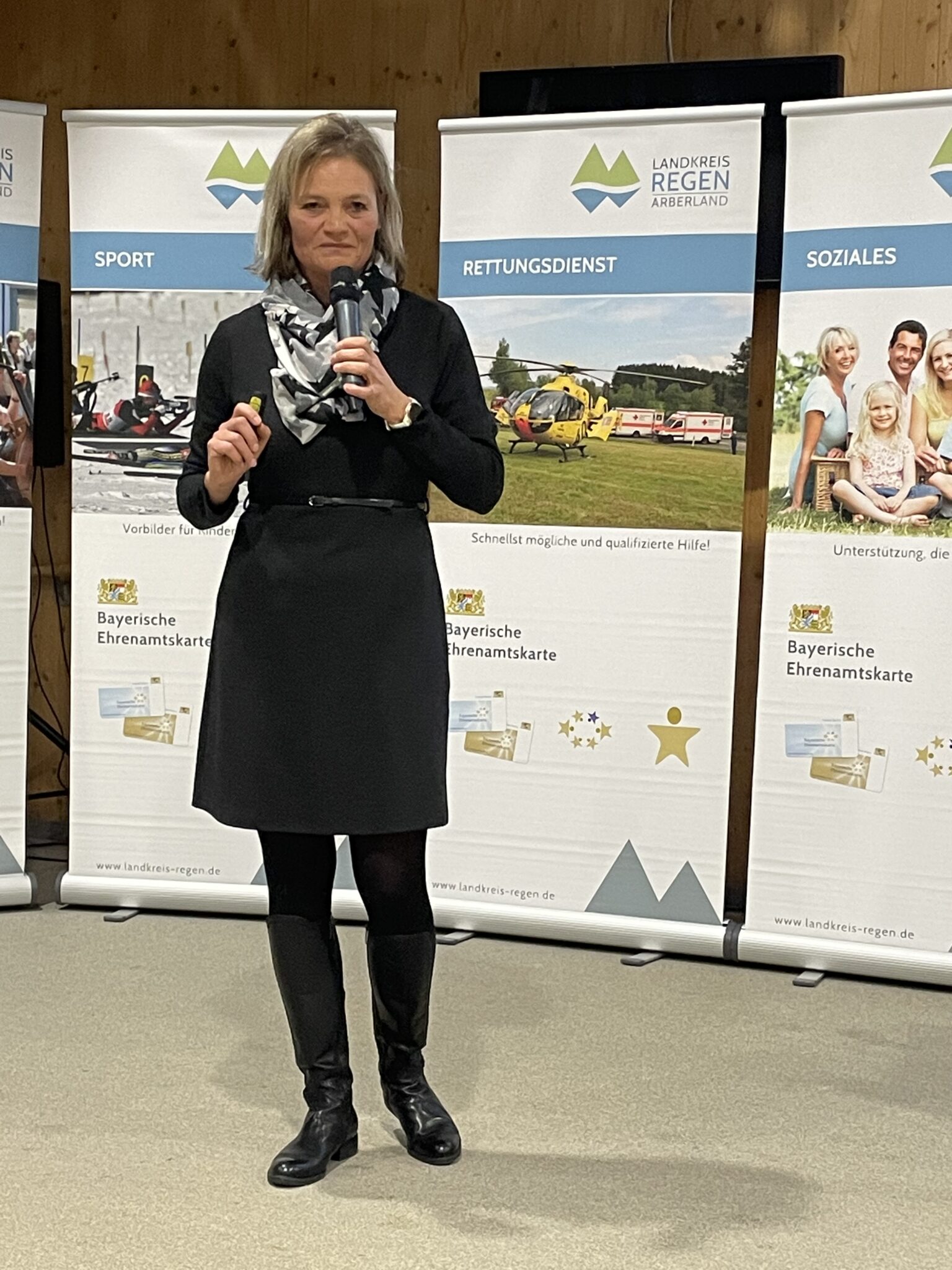 Verliehen wurden an diesem Abend sowohl goldene als auch blaue Ehrenamtskarten, wobei erstere lebenslang und zweitere drei Jahre Gültigkeit besitzen. Seit etwa eineinhalb Jahren gibt es diese Karten im Landkreis nicht mehr nur in physischer, sondern auch in digitaler Form – ein Angebot, das laut Organisatorin Doris Werner immer öfter in Anspruch genommen wird. Werner wies die Anwesenden in ihrem kurzweiligen Infovortrag außerdem auf die vielen Vorteile hin, die Ehrenamtskarteninhaber bayernweit genießen dürfen, wie etwa kostenloses Parken in den Arberlandkliniken oder Gratis-Tickets bei der Bayerischen Seenschifffahrt. Informationen dazu seien im Internet beziehungsweise in der App zu finden oder bei ihr selbst zu erfragen. „Die Ehrenamtskarte ist seit Jahren im Landkreis unser kleines Dankeschön für eure große Leistung“, betonte Werner gegen Ende und erzählte, dass bei ihr schon über 4.600 Ehrenamtskarten beantragt und ausgegeben wurden – eine beeindruckende Zahl, Tendenz steigend! An diesem Abend kamen nun also weitere etwa 100 Karten dazu, die jedem Engagierten zusammen mit einer Urkunde und einem kleinen Präsent von Landrat Raith, den jeweiligen Kommunalpolitikern und Werner überreicht wurden.