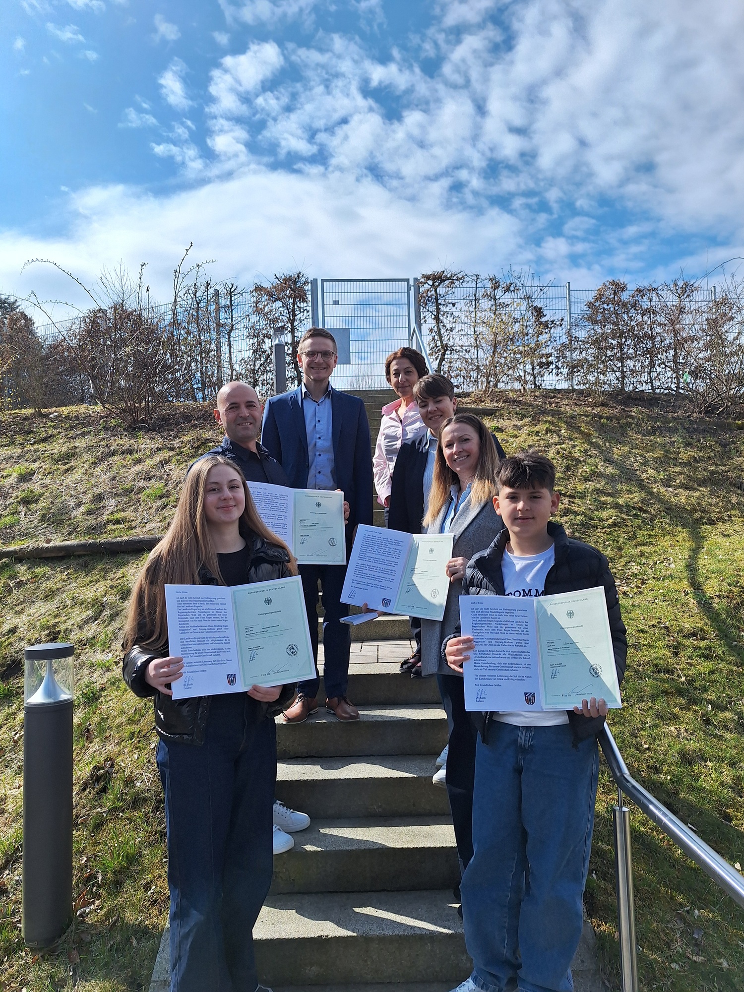 Regen. Ein besonderer Moment für eine ganze Familie: Artan und Marsida Vasku sowie ihre beiden Kinder Alisia und Enri haben im Landratsamt Regen ihre Einbürgerungsurkunden erhalten und sind damit nun deutsche Staatsbürger. Im feierlichen Rahmen bekannten sie sich zur freiheitlich-demokratischen Grundordnung der Bundesrepublik.