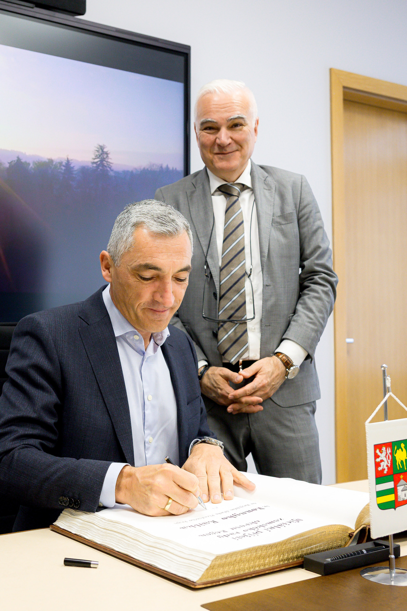 Regens Landrat Dr. Ronny Raith durfte sich, auf Einladung des Regionspräsidenten Dr. Kamal Farhan, ins Goldene Buch der Region Pilsen eintragen. Foto: Region Pilsen
