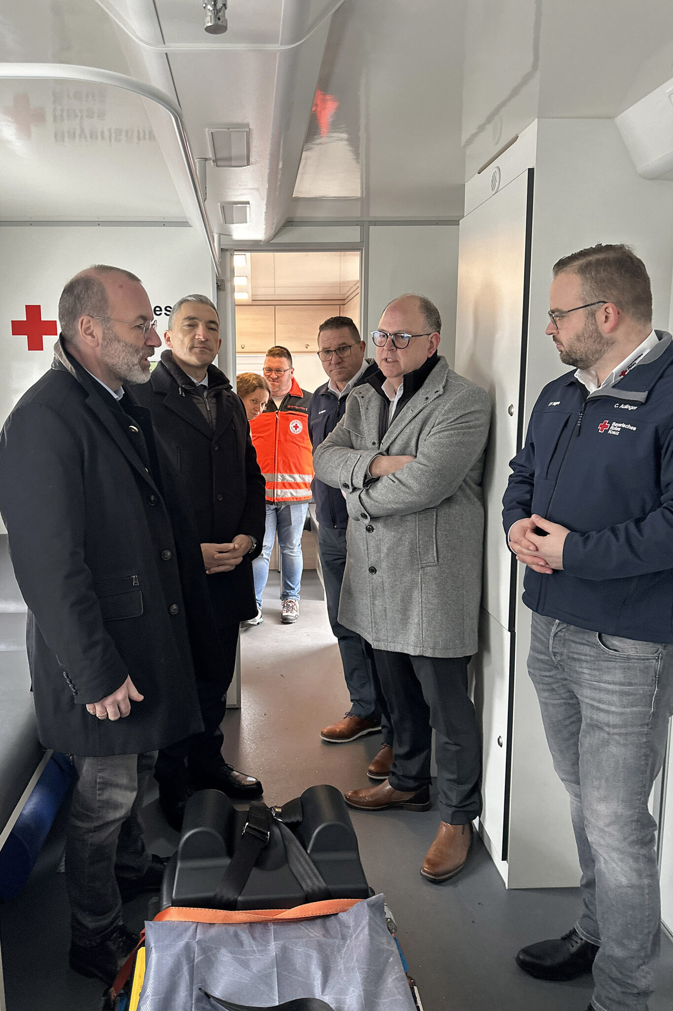 „Ihr erster Einsatz war während der Coronakrise“, berichtete BRK-Kreisgeschäftsführer Franz Lobmeier. Die Station wurde 2020 in Dienst gestellt und diente zunächst als Impfstation. Weber und Raith erkundigten sich nach den Einsatzmöglichkeiten. Die Station kann bei Veranstaltungen als Rettungswache dienen. Ein Teil ist wie ein Krankenwagen ausgestattet, der andere als Besprechungs- oder Ruheraum nutzbar. „Sie ist quasi eine rollende Arztpraxis“, sagte Lobmeier.