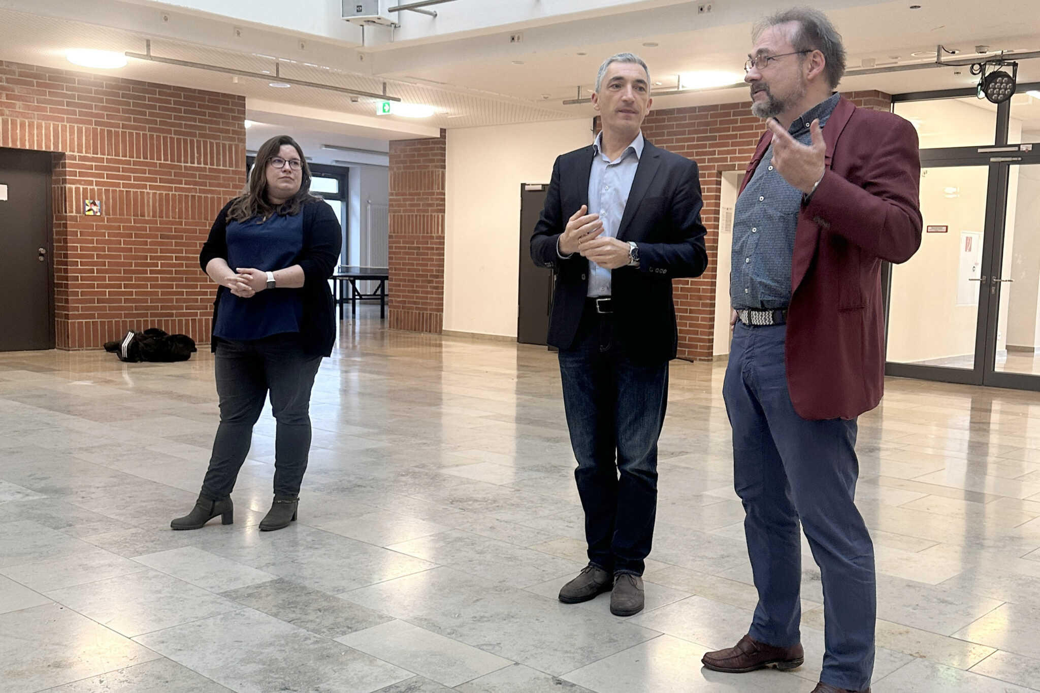 Der stellvertretende Schulleiter Christoph Heiduk (re.) begrüßte Landrat Dr. Ronny Raith und die Kommunale Jugendpflegerin Kathrin Götz an der Schule. Foto: Heiko Langer / Landratsamt Regen