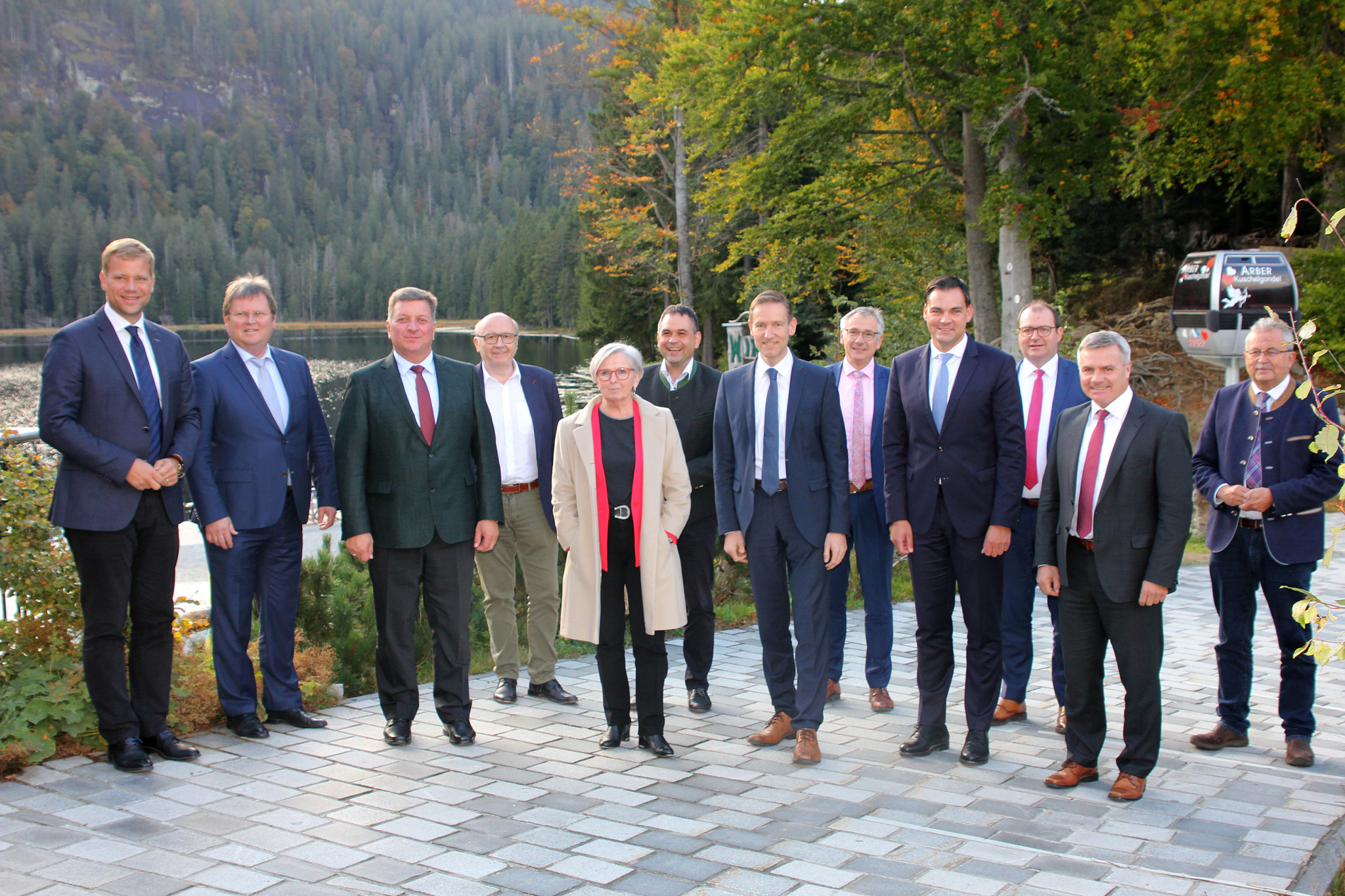 Bayerisch Eisenstein. Die niederbayerischen Landräte tauschen sich regelmäßig aus. Vor der Coronapandemie trafen sie sich mehrmals pro Jahr, immer in einem anderen Landkreis. Doch in den vergangenen Monaten fanden die Treffen nur online statt. „Da ist es schön, wenn man sich wieder in Präsenz treffen kann“, sagte Gastgeberin Rita Röhrl und stellt so die „Qualität von Präsenzveranstaltungen“ heraus. Zusammen mit Sebastian Gruber, dem Bezirksvorsitzenden Landkreistages, hatte sie ihre niederbayerischen Landratskollegen in das Arberseehaus am großen Arbersee eingeladen. Bei strahlendem Sonnenschein konnten die beiden alle niederbayerischen Landrätekollegen sowie Regierungspräsident Rainer Haselbeck und Bezirkstagspräsident Dr. Olaf Heinrich begrüßen.