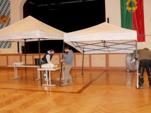 „Meistens bauen wir unsere Teststation bei Altenheimen und ähnlichem im Freien auf, dann haben wir es schon kühler“, erklärt Mike Stranzky. Er ist bei 21 Dx Projektleiter für Niederbayern und so freut sich mit seinen Kollegen darüber, dass man in der geräumigen Stadthalle einen relativen warmen Platz findet. „Zu warm wird es uns nicht, nach einer Stunde testen, machen wir eine kurze Pause, dann wird durchgelüftet und die Flächen werden desinfiziert“, erklärt er. In Viechtach testet das Team am Freitag nicht die Allgemeinbevölkerung, sondern die Mitarbeiter der Kliniken, Behinderteneinrichtungen und Altenheimen der Region. Rund 400 Test wurden am Freitag gemacht.