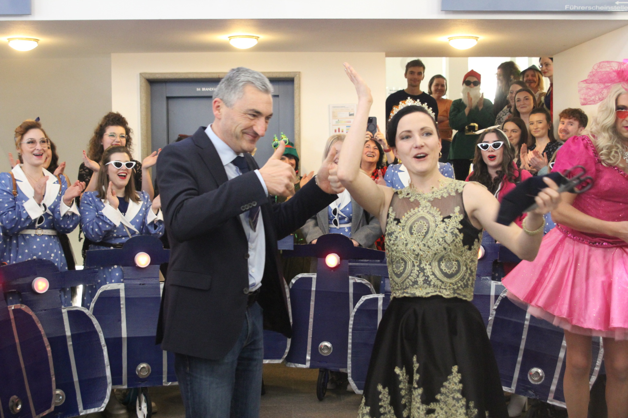 Fröhliche Stimmung beim Besuch der Narregenia am Unsinnigen Donnerstag im Landratsamt