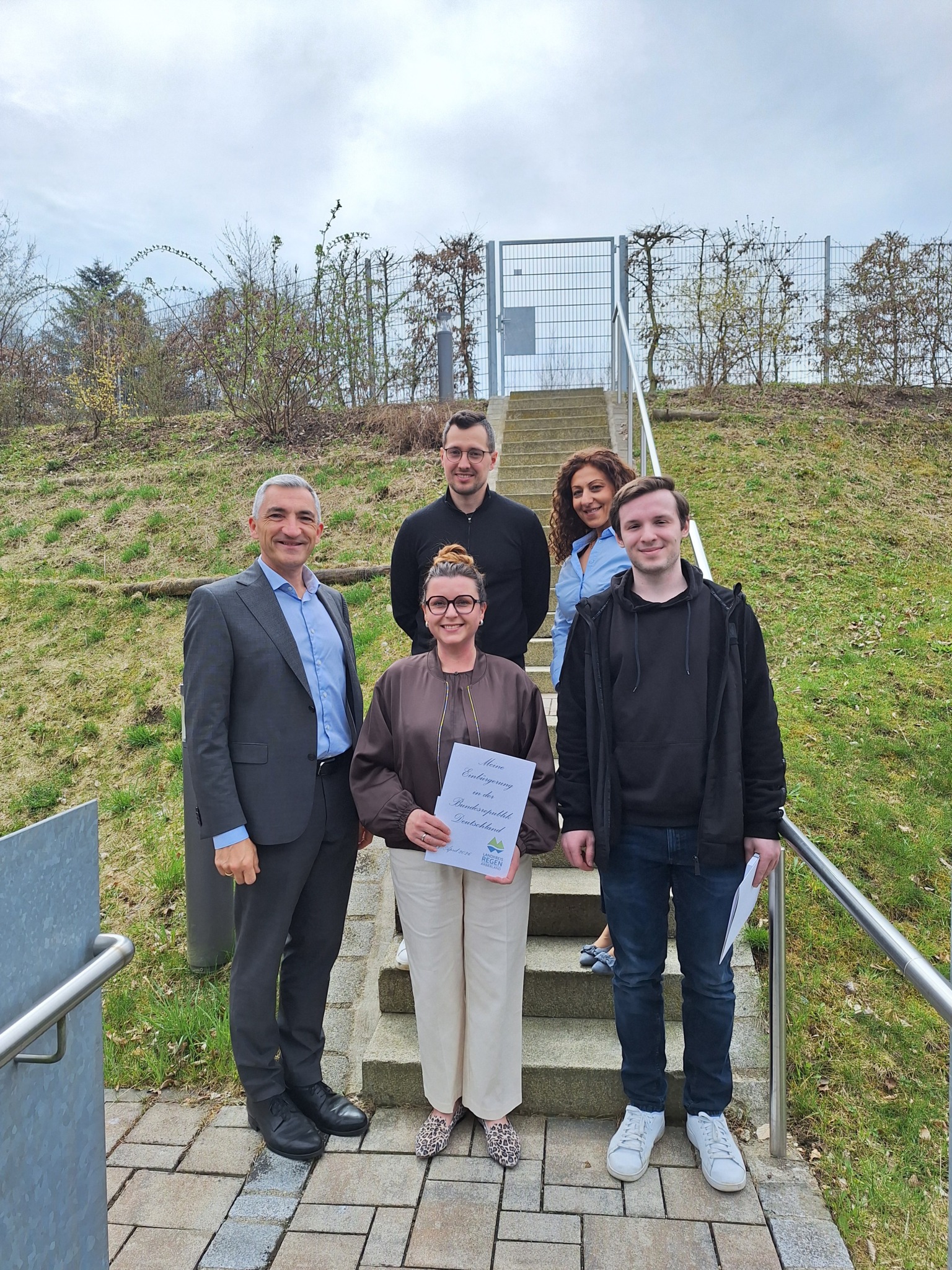 Unser Bild zeigt vorne von links: Landrat Dr. Ronny Raith, Dr. med. Univ. Sanela Geiß, Sviatoslav Vasylashchuk; hinten von links: Yildiz Oragaz (Ausländeramt) und Michael Spielbauer (stellvertretender Sachgebietsleiter Ausländeramt). Foto: Martine Ernst / Landratsamt Regen